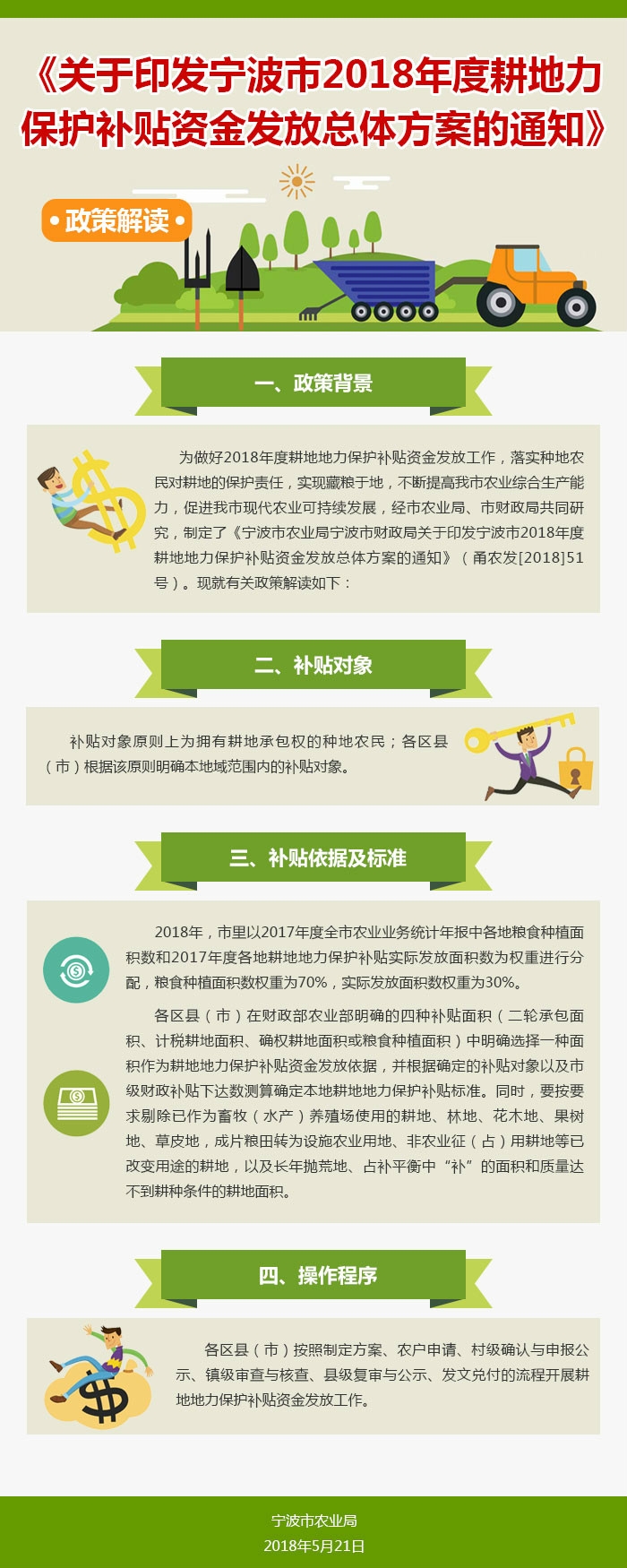 图解:《关于印发宁波市2018年度耕地地力保护补贴资金发放总体方案的通知》